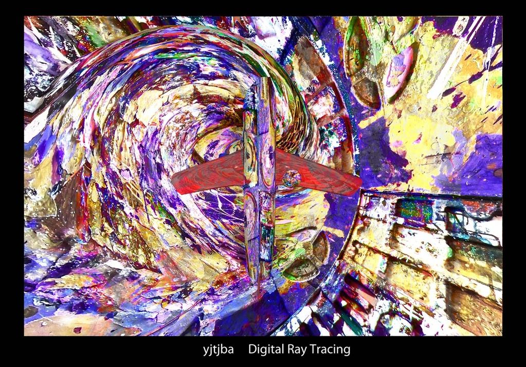 yjtjda, digital print, Ray Tracing software combined random images into new images.